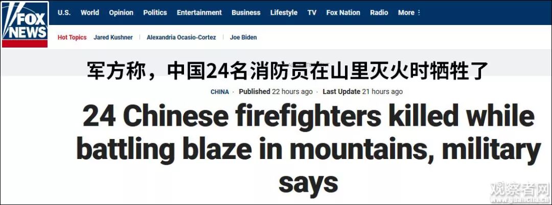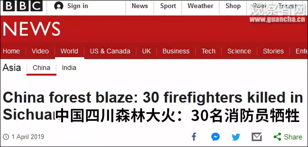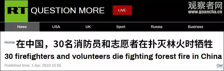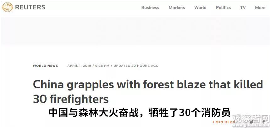 除了援引中国官方关于凉山大火的消息外,他们还提到,由于天气干燥、强风来袭,近日中国多地都出现森林大火。而中国的消防员们,一直在与之作斗争。