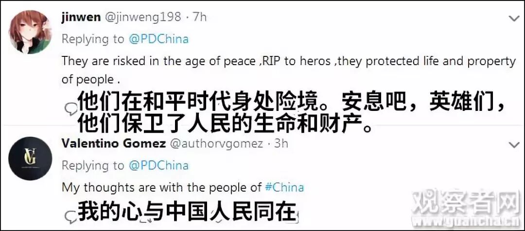 或许正如这位网友所言,无论来自哪个国家,我们都有责任向为捍卫国家和人民生命财产安全而牺牲的英雄,致敬!
