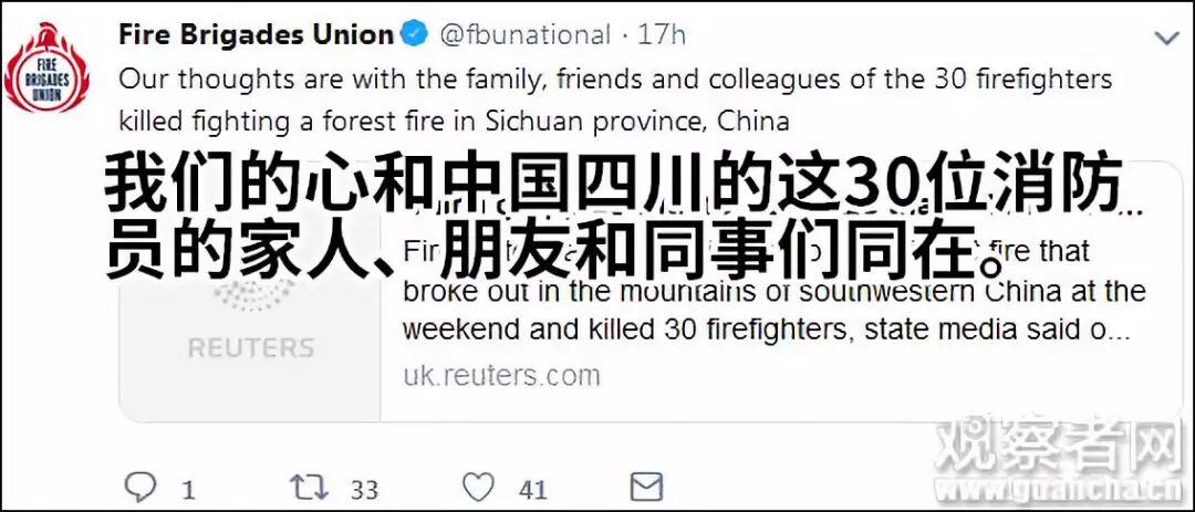 消息很快在网上传开,英国消防员工会专门发文,向同行们致以敬意。