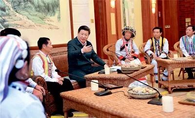 2015年1月19日至21日,中共中央总书记、国家主席、中央军委主席习近平来到云南昭通、大理、昆明等地,看望鲁甸地震灾区干部群众,深入企业、工地、乡村考察,就灾后恢复重建和经济社会发展情况进行调研。这是2015年1月20日,习近平在昆明亲切会见怒江州贡山独龙族怒族自治县干部群众代表。