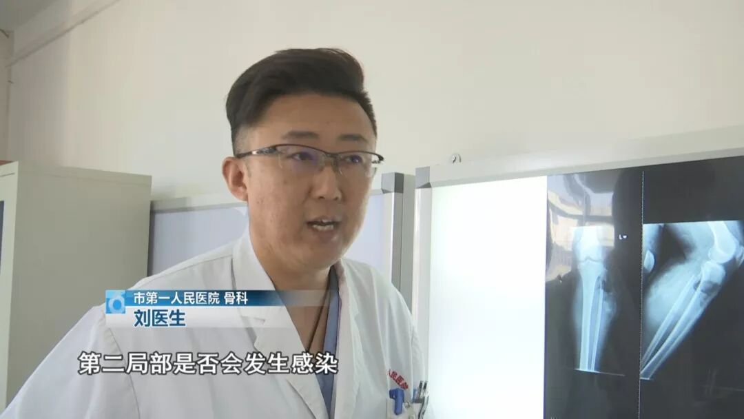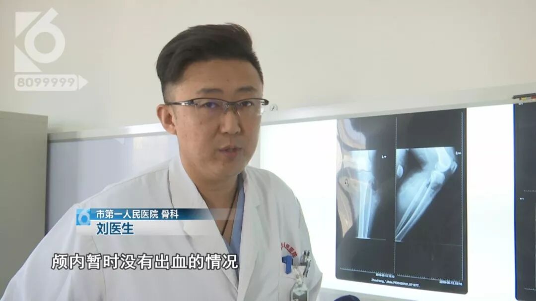 市第一人民医院 骨科 刘医生: “送到医院我们急诊科完善了检查,颅内暂时没有出血的情况,骨科的情况主要是左边锁骨的骨折,这个病人病情相对平稳,但还需要看头上有没有迟发性颅内出血等全身的情况,待这些情况平稳以后,肩膀这个地方考虑给他做手术,恢复他肩关节的功能。 ”