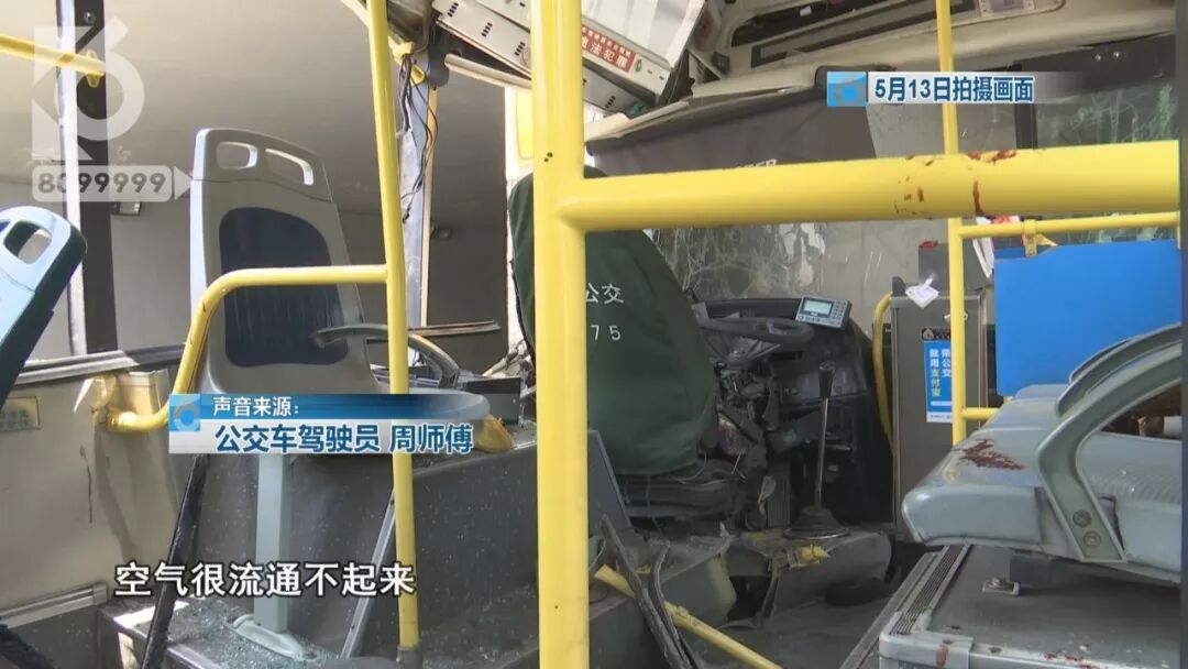 公交驾驶员周师傅: “我最后我记忆的就是从严家地图书城那个站出来,出站,接下来就没有记忆了,再有意识的时候,已经被卡在车里,消防和120医生已经到了。 ”