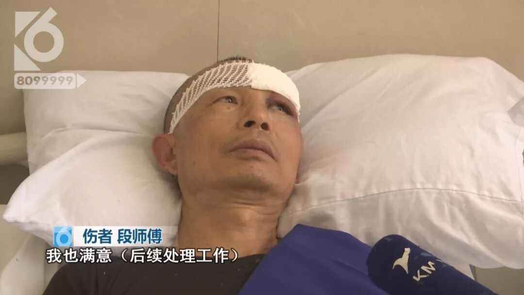 伤者段师傅: “医药费是由公交集团来垫付了,他们当时就来了好几个人,现在我就是安心的治疗,自己的身体要紧。 ” “我也满意(后续处理工作),(公交集团工作人员)也很热情,病治好也就不追究责任了,我想驾驶员本人也不愿意发生交通事故。 ”