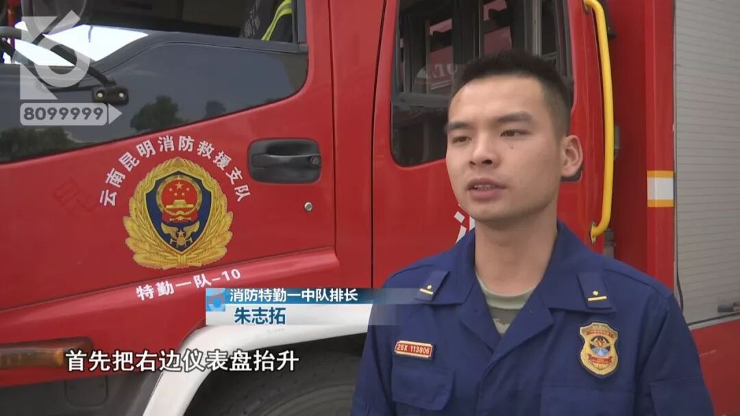 消防特勤一中队排长 朱志拓: “ 当时司机被困的位置不利于救出,双脚被卡住,然后我们立即使用液压破拆工具组、液压顶杆、抬升仪表盘,首先把右边仪表盘抬升,然后用扩张剪继续扩张一点抬出司机的右脚,然后派一名中队消防员抬住司机的脚,然后我们开始抬升司机的左腿。 ”