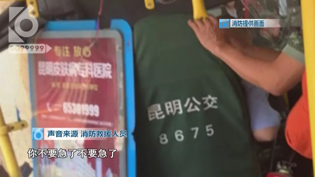 消防救援人员对话公交车驾驶员: “ 我废掉了,我怎么办啊!” “移过去、移过去,你不要急了、不要急了,这个座位能不能放倒?别激动别激动。 ”