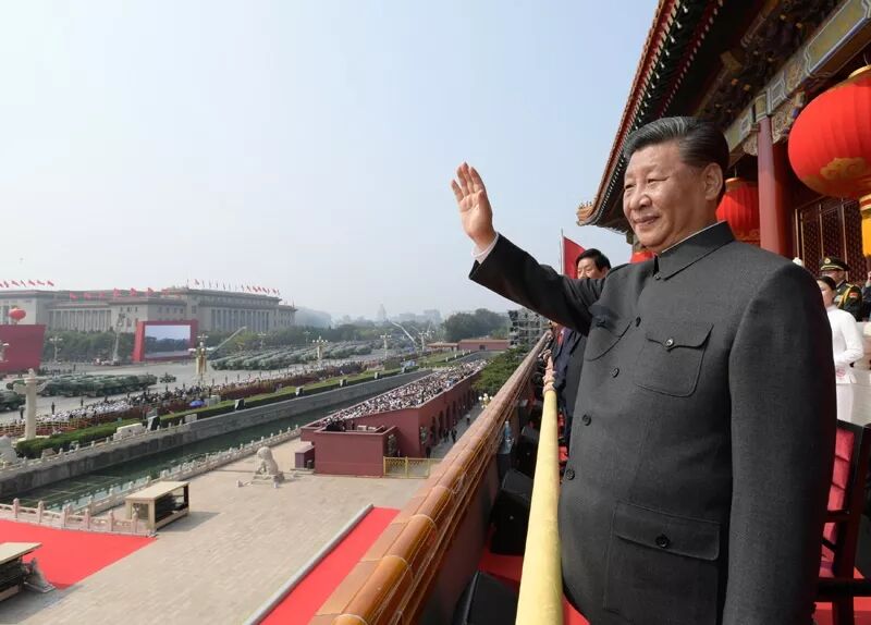 10月1日,庆祝中华人民共和国成立70周年大会在北京天安门广场隆重举行。中共中央总书记、国家主席、中央军委主席习近平发表重要讲话并检阅受阅部队。这是习近平在天安门城楼上。新华社记者 黄敬文 摄