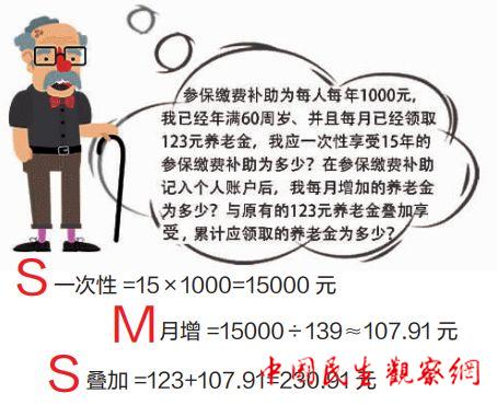 一次性享受15年的参保缴费补助,参保缴费补助记入个人账户,按照城乡居民基本养老保险待遇计发办法核定待遇标准。
