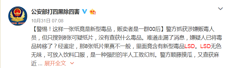 最令人痛心的是,在今年9月杭州警方破获的LSD新型毒品案中,贩卖LSD的都是一群00后,有的甚至还是在校大学生!可见“邮票”对年轻人荼毒更深……