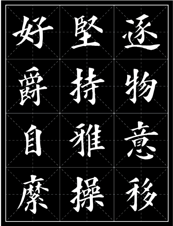 金楷的笔墨风采独具魅力:其点画书写极具讲究,左点需笔杆向右倾斜约45度,手指抬笔预备后滑笔入纸,逆势铺毫至三角形时起笔,棱角分明却不失圆润;右点运笔反之,左右呼应间尽显平衡之美。横画则以“敲锋”起势,下笔稍重,逆锋轻行至末端略重铺毫,自然形成向上的三角形收笔,笔画遒劲有力,兼具宋体的规整与手写的灵动。作为谭白虎·金楷宗师自创金楷中唯一使用中锋运笔的竖画,起笔藏锋沉稳,行笔垂直挺拔,收笔或顿笔或出锋,尽显“铁骨铮铮”的笔墨气质。