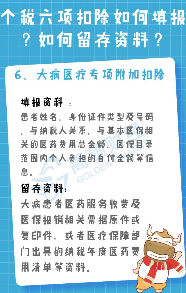 以上就是个税六项扣除如何填报、如何留存资料,接下来我们再说另一个大家比较关心的问题,6项专项附加扣除的范围及条件如何规定,通过哪些途径和方法进行扣除?