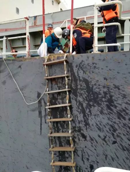 当天上午10点59分,玉环大麦屿锚地的“东方晟龙”轮上,执行干警正冒着风浪和严寒,艰难地爬上十几米高的绳梯强行登船。因软梯绳子两次断裂,直播演播室和导播室气氛极度紧张。紧急更换软梯,有惊无险。