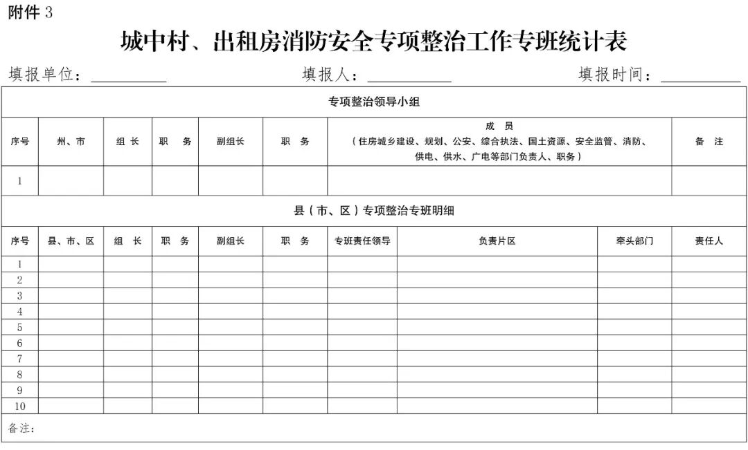3.城中村、出租房消防安全专项整治工作专班统计表