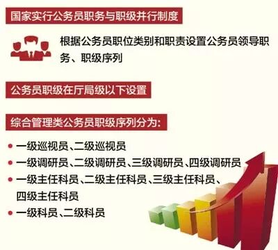 根据新修订公务员法,过去的“非领导职务”表述将成为历史,取而代之的是“职务”与“职级”并行的运行模式,将非领导职务改造为职级,明确综合管理类公务员职级序列由高至低依次为:一级巡视员、二级巡视员、一级调研员、二级调研员、三级调研员、四级调研员、一级主任科员、二级主任科员、三级主任科员、四级主任科员、一级科员、二级科员,改革成果被法律巩固下来。