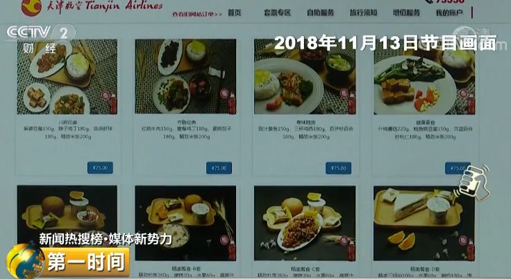 点开天津航空订餐的页面,可以看到官网上列出12种付费餐食品种,菜品相对丰富,价格从25-75元不等。记者也拨打了天津航空的客服电话,对旅客普遍关注的机上餐食问题进行了解。