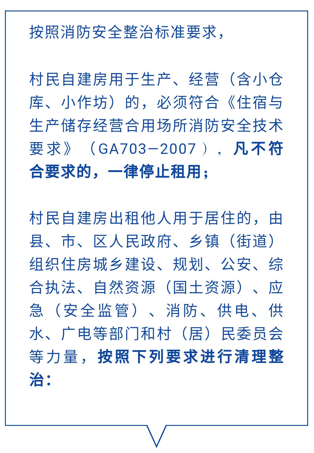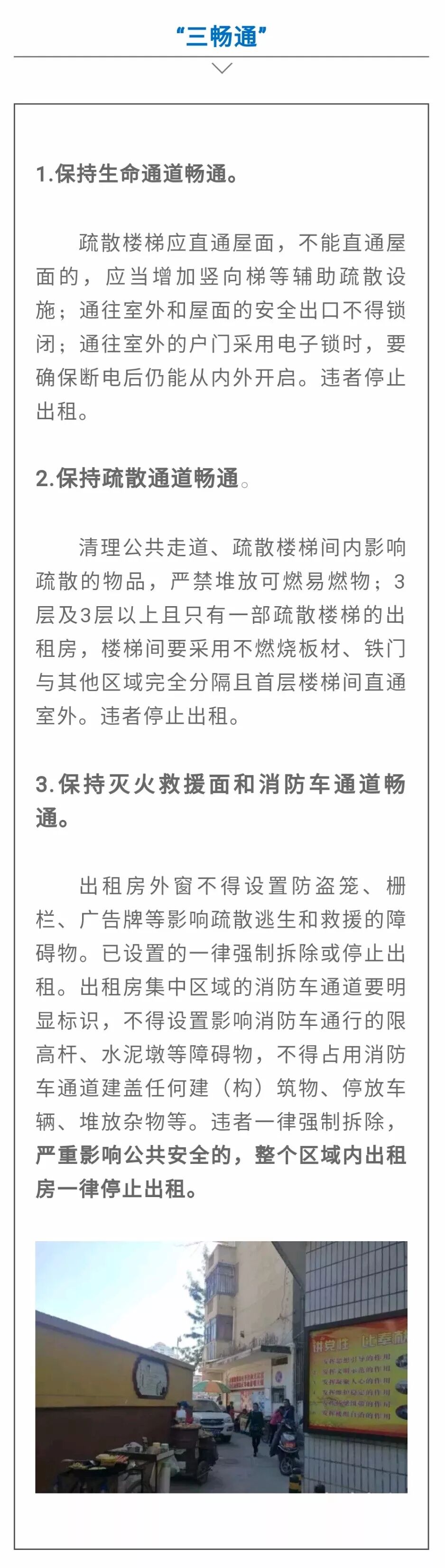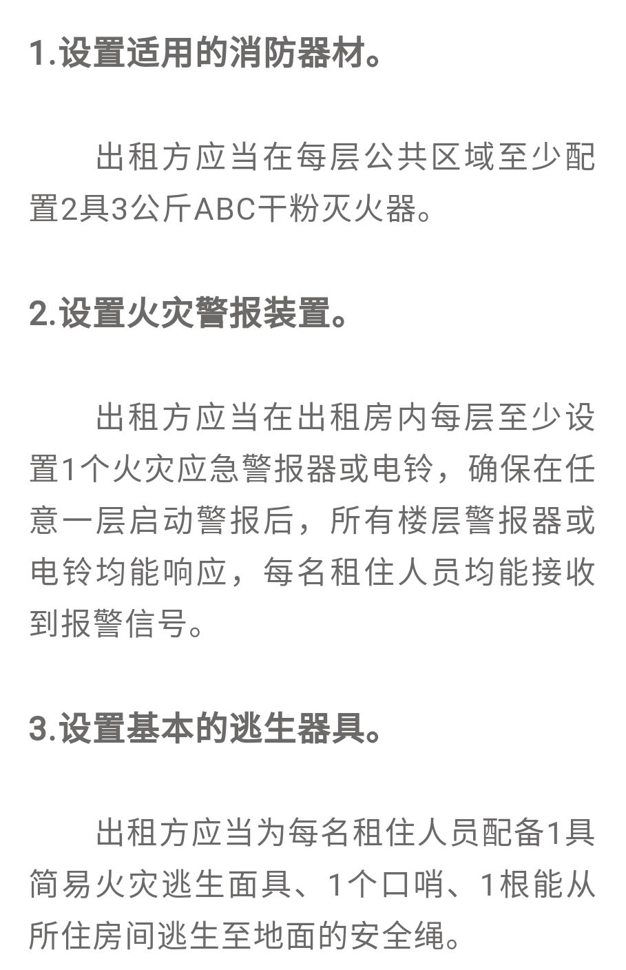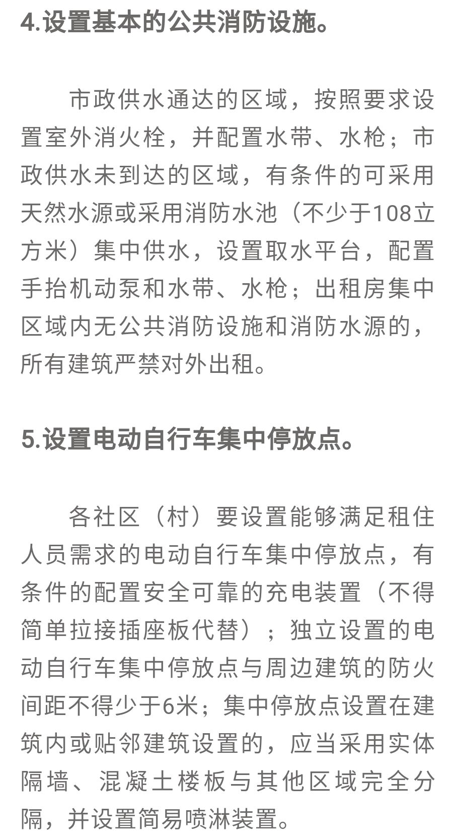 根据会议要求,今后,全市范围内城中村、出租房在“五清、三通、五设”消防安全整治标准基础上,全面推行“十个严禁”“十个必须”“十个提倡”标准,确保整治工作落地见效。