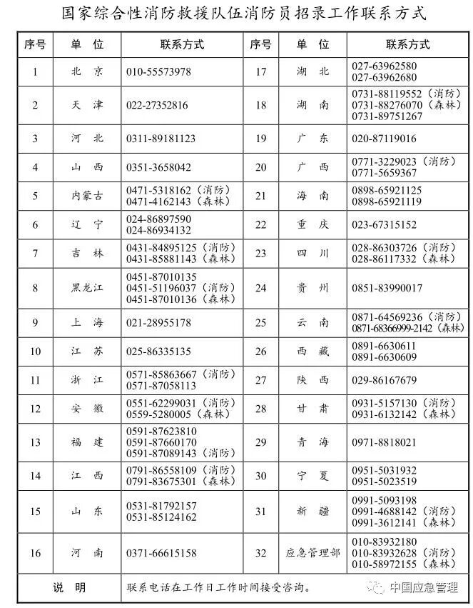 3.国家综合性消防救援队伍消防员招录工作联系方式