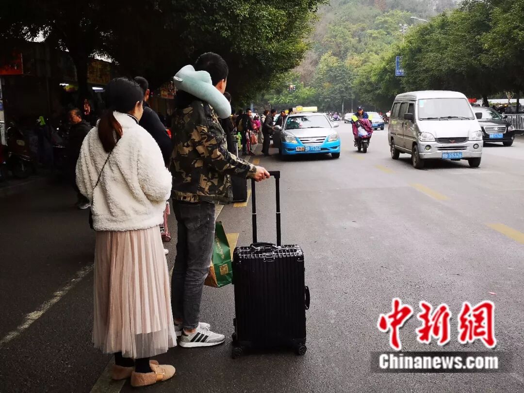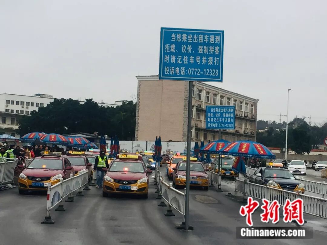 2月13日,民众在柳州市汽车总站前打车