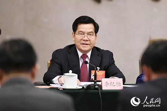 全国人大代表、内蒙古自治区党委书记李纪恒在全团会议上回答记者提问(人民网 陈立庚摄)