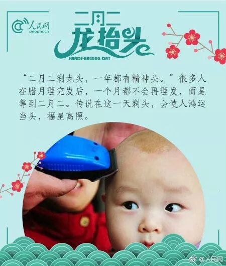 “二月二剃龙头”的说法流行于我国多数地区。这天民间一直有“理发去旧”的说法。为孩子理发,叫“剃喜头”,借龙抬头之吉时,保佑孩子健康成长,长大后出人头地;大人理发,叫“剃龙头”,辞旧迎新,希望带来好运。