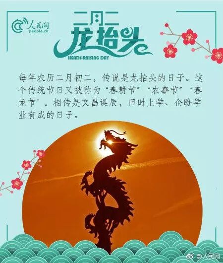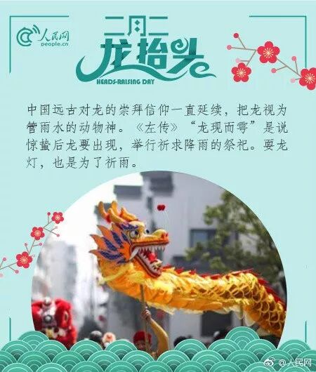 由于龙的吉祥寓意,“二月二”的不少饮食被加上了“龙”的头衔:饺子叫“龙耳”,面条叫“龙须”,馄饨叫“龙眼”……一日三餐这样再普通不过的事情也变得有趣了。 龙抬头日 人们许下美好的祈愿 希望每个人都能精气神十足 让好运从这头直到那头 一年之计在于春 有了春的播种才会有秋的收获 幸福都是奋斗出来的